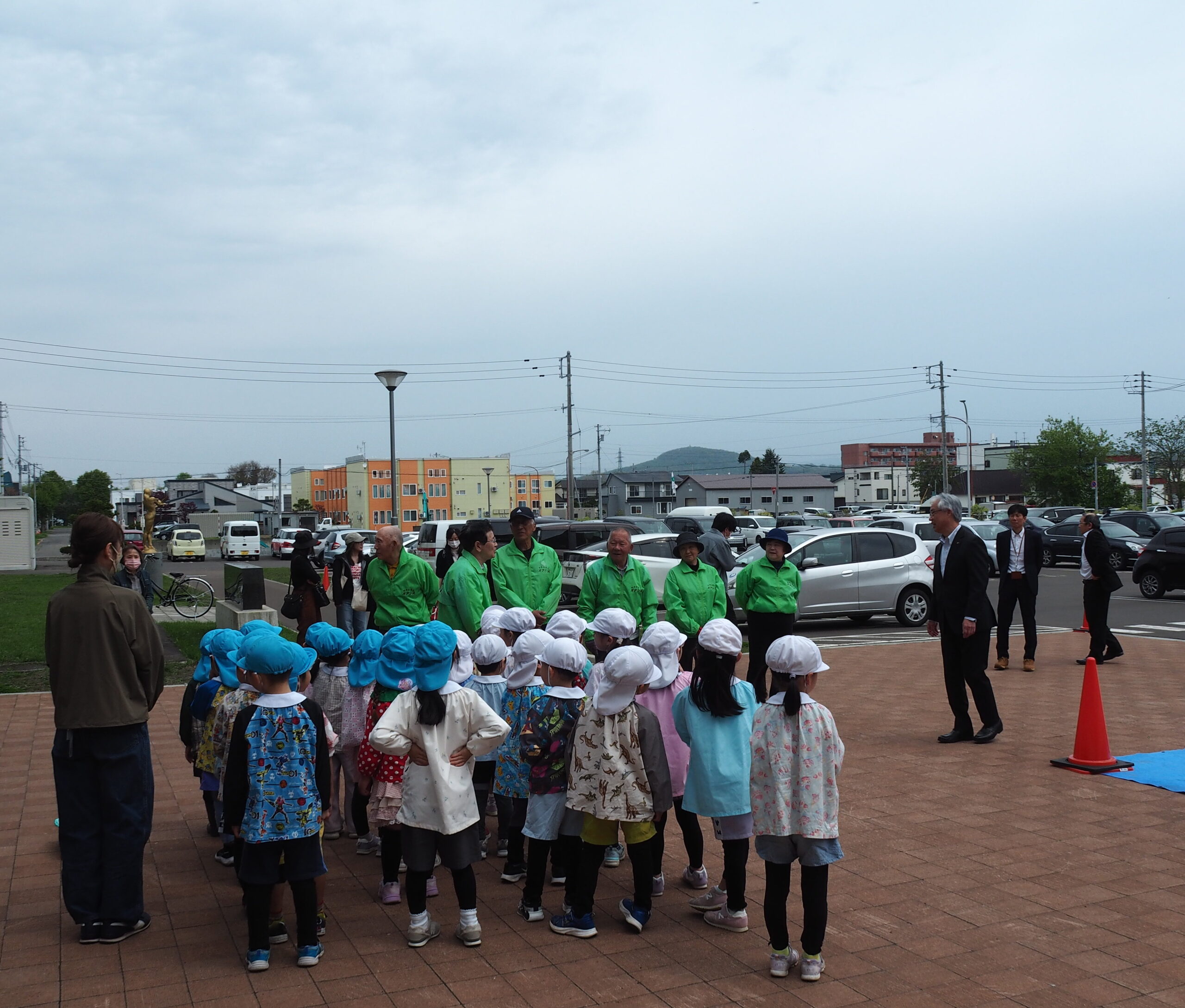 幼稚園児たちと一緒に市役所前を彩る花植えをしました