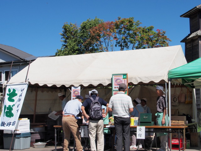 秋が感じられる快晴の一日となりました。まずは、流れのプラザで開催された砂川手打ちそば愛好会主催による「そば祭り」を見に行きました。写真を撮っていると「新聞屋さんも食べていって」と声をかけられました。最近、よく報道関係者と間違われます。