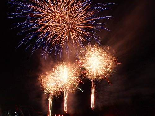 研修会終了後、研修会場からバスで、砂川市役所に戻り、そこから歩いて第45回砂川納涼花火大会場に向かいました。