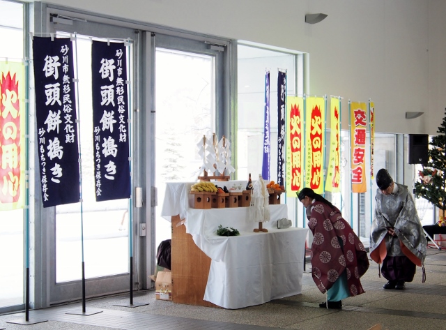 まずは午前9時より砂川市地域交流センター「ゆう」にて、祈願祭が行われました。今年はいろいろありすぎました。無火災、無災害、交通安全を祈願せずにはいられません。