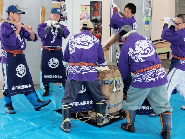 100年以上の歴史があり、市の無形民俗文化財に指定されている砂川もちつき保存会による「街頭もちつき」を見に行きました。