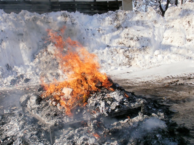 マイナス10度以下ですが快晴で気持ちがよいです。砂川神社ではどんど焼きが行われていました。ここで少し暖を取りました。