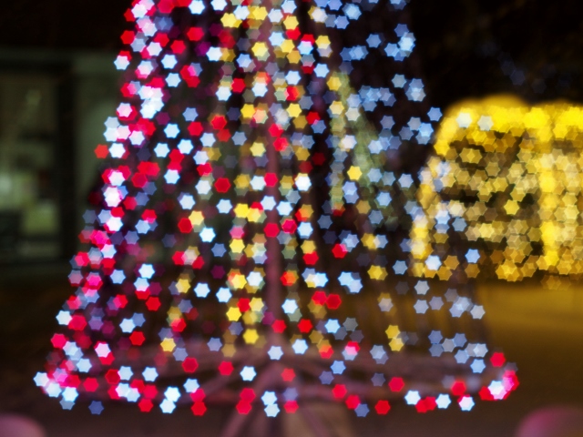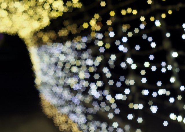 OLYMPUS DIGITAL CAMERA 裏技で「星ボケ」を作ってみました。ツリーの飾りのようになりました。