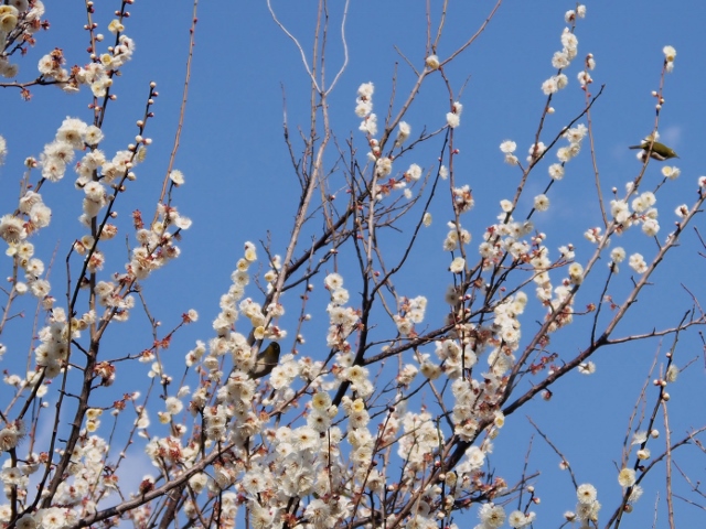 OLYMPUS DIGITAL CAMERA 道を歩いていると八分咲きの梅にメジロを見かけました。絵にかいたような春の風景ですが、この日の最低気温は2度でした。体感気温はそれなりに寒かったです。