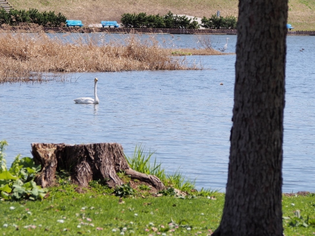 自転車で市政報告配布のため市内を周回していました。昼頃、一服するため誰もいない北光公園を歩いていたところ、一羽だけ取り残されたような白鳥を見かけました。