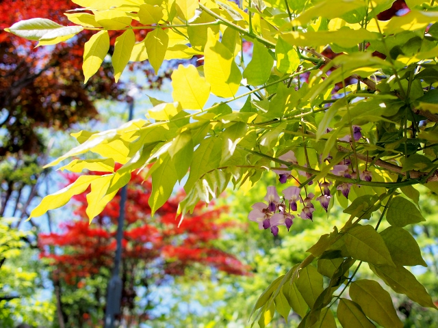 午前中は自転車で市内をめぐり、昼休みに北光公園に藤の花を見に行ったところ、ほとんど咲いていませんでした。そもそも花芽があまりない様子です。他の場所でも老木が枯れてしまったというような話も聞きましたので、藤の花の管理は難しいのかもしれません。