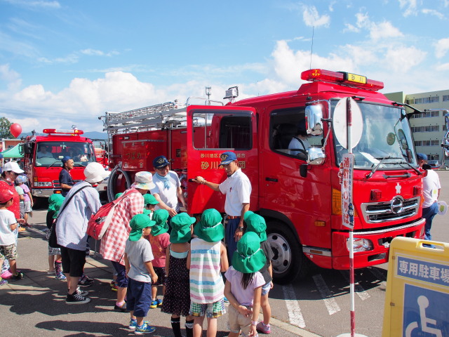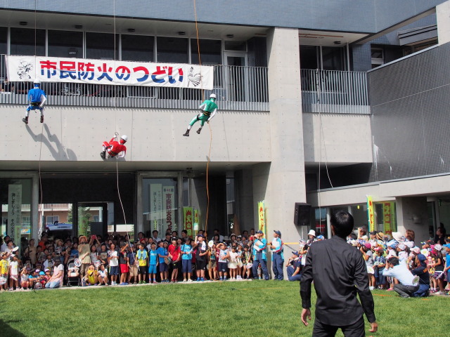 週末イベントその1 投稿日時: 2016年8月5日 投稿者: 武田しん 金曜日は「第46回市民防火の集い」及び「第22回ラブ・リバー砂川夏まつり」「第46回すながわ納涼花火大会」が開催されました。 地域交流センターゆうで開催された防火団体主催「市民防火のつどい」の様子です。 火災予防ポスターコンクールの入賞作品は個性あふれる作品が勢ぞろいです。 空知太保育所幼年消防クラブ員による合唱 ファイヤーレンジャー登場 悪役も進化して、今年はダンスダンスレボリューション 放水体験、消防車試乗コーナーは今年も人気です。 その他、防災関連の展示もありました。 帰宅困難者キットの中にはラジオ、簡易ブランケット、ライト等が一式セットで入っています。現在、夏休み中ですが、子供達が防災・防火について、学ぶことができるよい機会になったと思います。