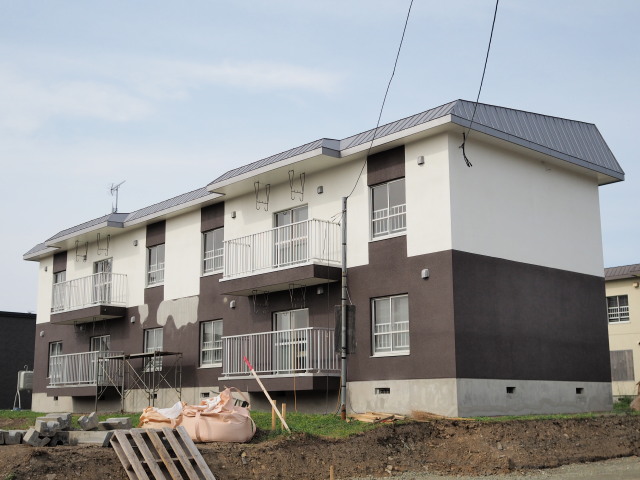 移住定住促進住宅の完成が近づいています。現在、入居者募集中です。元国家公務員宿舎には見えない、周囲の景観にもマッチした建物になりそうです。