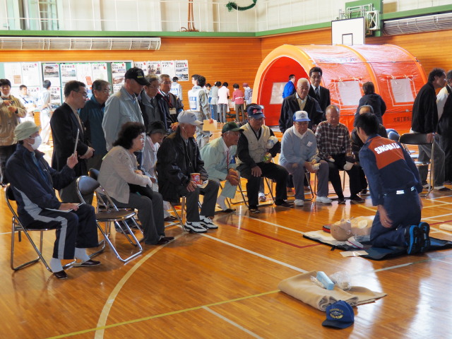 消防職員により救急応急訓練を実施しています。AEDの操作等についても指導がありました。