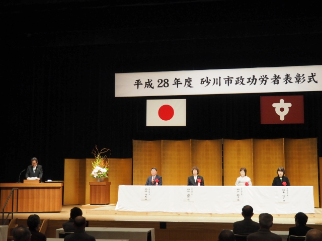 本日は、砂川市表彰条例第1条に基づく、市政功労表彰式に出席しました。今年は市政功労表彰者として自治振興部門、教育文化部門、社会福祉部門から各1名の合計3名、貢献表彰者1名の総計4名が表彰されました。また、永住功労者に対する感謝状の贈呈も行われました。永年の御功績に心からの敬意を表したいと思います。
