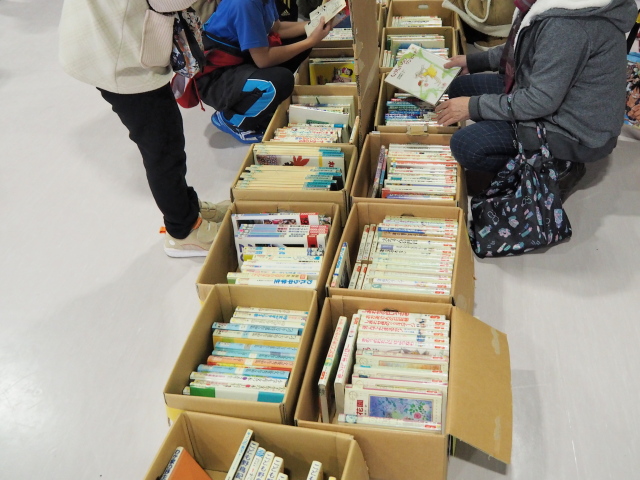 午後から、公民館4階で開催された図書館リサイクル市を見に行きました。こちらは図書館の除籍本を無料で提供しているものです。私は午後1時の開始直後に出かけのですが、既に多くの人が集まっていました。なお、今年は3000冊の提供、昨年は改修工事のため実施していませんでした。