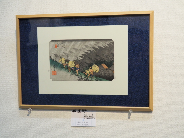 ついでですので、公民館の2階で開催されている「東海道五十三次展」を見てきました。こちらのコレクションは公民館が設立された56年当時に、市民から寄贈されたものです。
