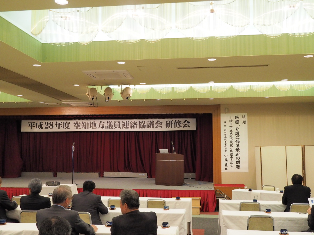 砂川パークホテルで開催された空知地方議員連絡会議協議会主催の講演「医療・介護に係る最近の問題」を傍聴してきました。私はメンバーではないですが、自民、保守系の議員で構成される空知地方議員連絡会議協議会は昭和63年に結成され、来年30周年を迎えるとのことです。