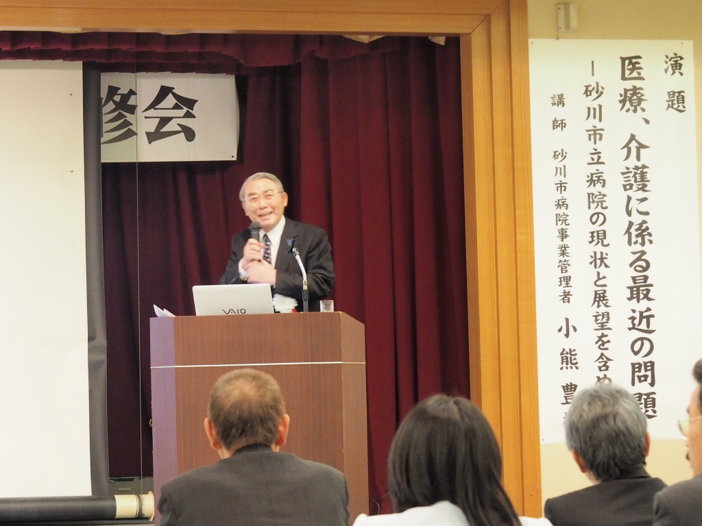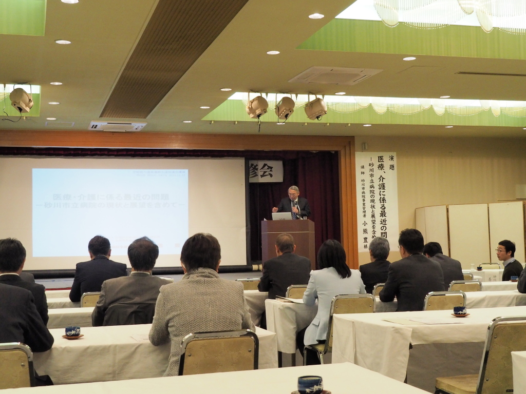 今回の講演は、砂川市立病院の小熊豊事業管理者の講演とあって、傍聴のお誘いがあったことから一般参加者として出席した次第です。