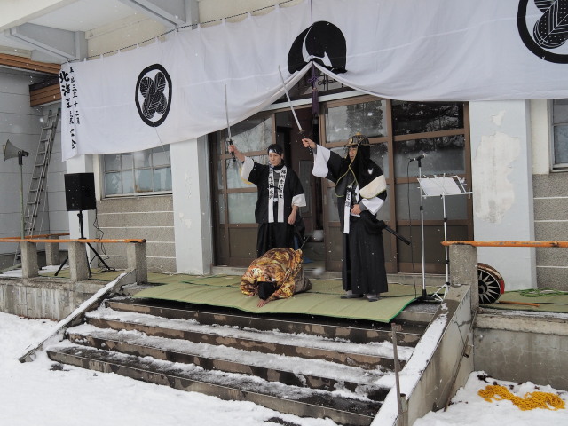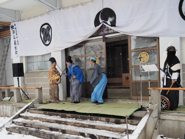 今年の新企画、ミニ芝居です。これは松の廊下の「殿中でござる」の場面。年末恒例の忠臣蔵も最近は放送されなくなってきたので、若い人にはなじみがない人が多いかもしれません。