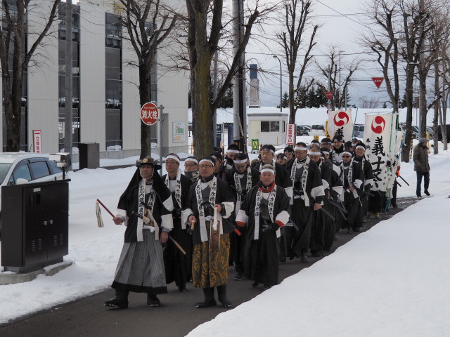 行事中の気温はマイナス3度ぐらいだったと思います。それなりに防寒対策をして行きましたが足元から冷えてきました。寒い中、義士の皆様はお疲れ様でした。