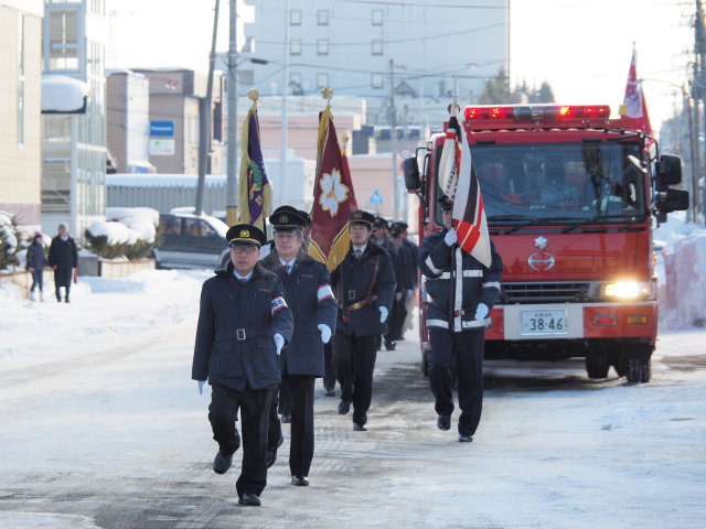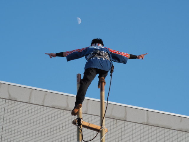 平成29年砂川消防出初式 投稿日時: 2017年1月6日 投稿者: 武田しん 私自身は既に4日から活動を開始していました。本日も午前中は市政報告の配布をしています。午後2時からは、今年初めての公式行事の出初式への出席です。かれこれ1週間、降雪もなく、本日も晴天となり、北海道の天候としては希な御用始めとなっています。 マイナス10度以下で空気も澄んでいるのか、キリッと締まった感じの写真が撮れています。 撮影の後半には、気温のためか、カメラの動作が不安定になってきました。 登梯の体勢を維持するには、体幹の筋肉を鍛え上げる必要があります。団員達の普段の鍛錬が伺えます。とても頼もしく思います。 月に青空、CGみたいな背景です。 昨年は、防災について、様々な教訓を我々は得ました。今年一年、大きな災害や火事がないことを願って会場を後にしました。