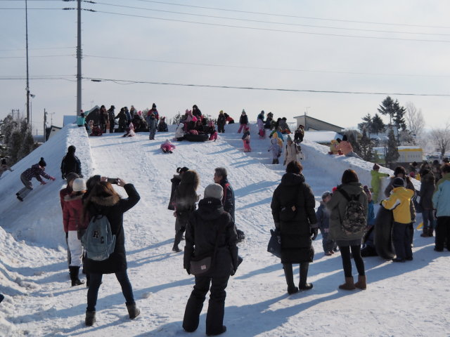 雪山滑り台にて。今年はわんぱくな子供達が多かったような気がします。