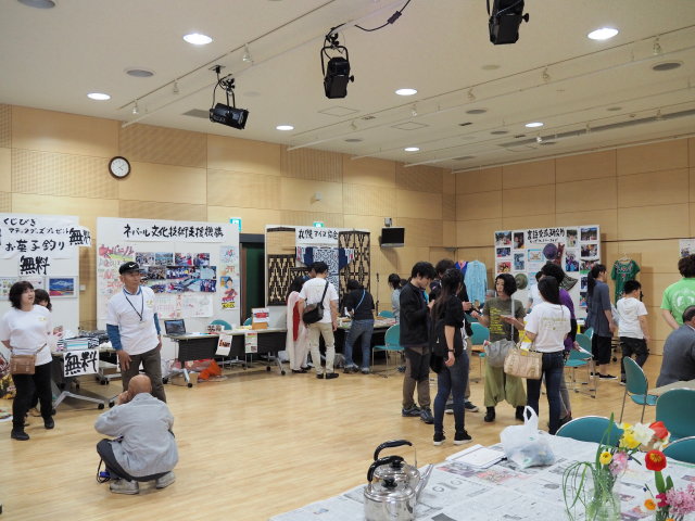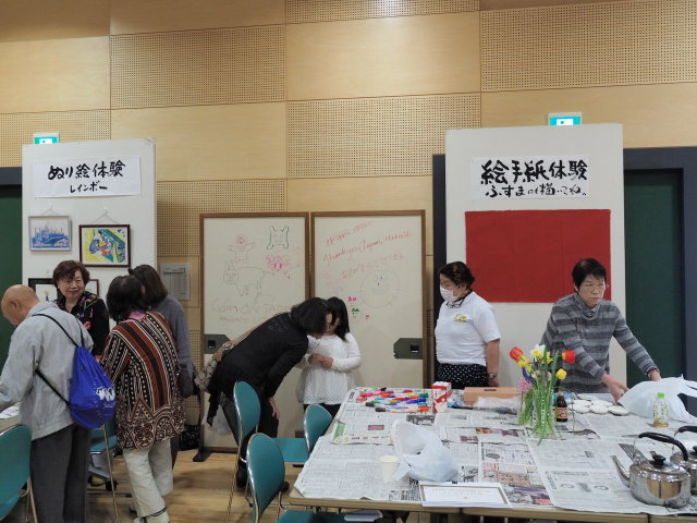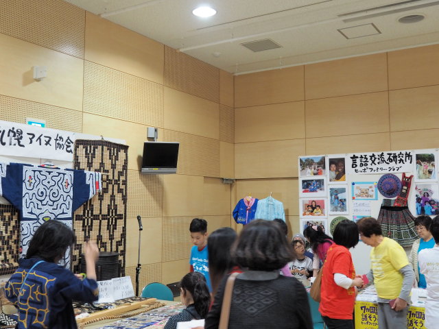 国際交流広場は「ゆう」のミニホールにおいて、言語交流研究所ヒッポファミリークラブ、札幌アイヌ協会をはじめとした各団体が展示や体験コーナーにより異文化と触れ合うための機会を提供しています。200人弱の来場者があり盛況に開催されました。