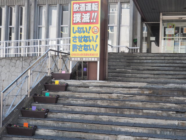 緑と花の祭典も近づいていますが、砂川市役所の玄関にお花のプランターが置いてありました。
