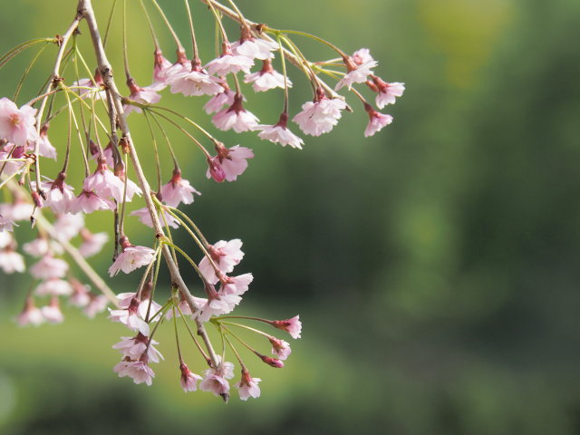 点在している菜の花畑では、あちこちで写真を撮影している人を見かけました。なお、下の写真は北海道こどもの国にて撮影した満開の枝垂れ桜です。