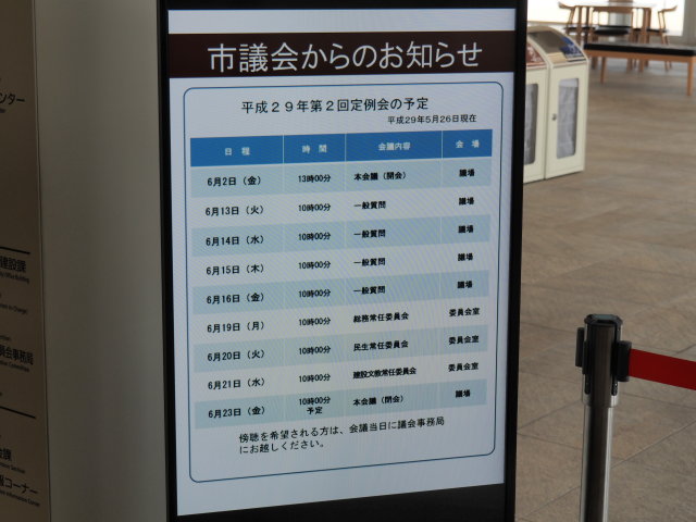 議会施設等検討会では、今年の5月8日に開庁式を行ったばかりの北広島市役所の新庁舎の議会棟を視察してきました。なお、議会施設等検討会は議長の付託を受け、新庁舎の議会棟に必要な施設等についてを検討するため設置されています。