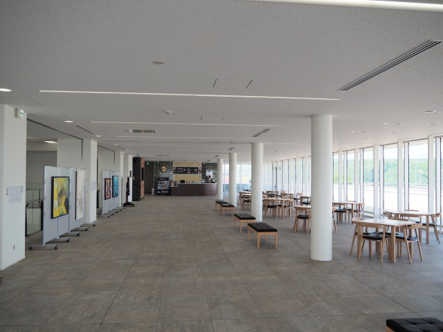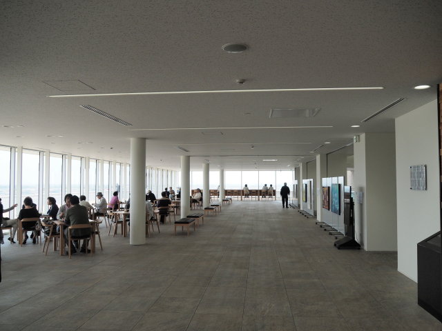 議場がある5階には市民ギャラリー、展望ロビーも設置され、テラスと石屋製菓が運営するカフェがあります。