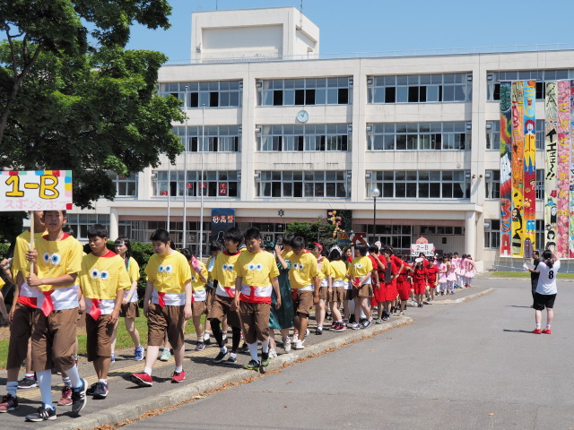 暑い中、高校生達は元気はつらつです。赤いメガフォンが綺麗に宙に舞いました。