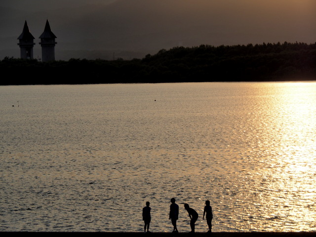夕方から遊水地管理棟前広場で行われている第22回下覧櫂に行きました。今年は天気に恵まれ幸いです。
