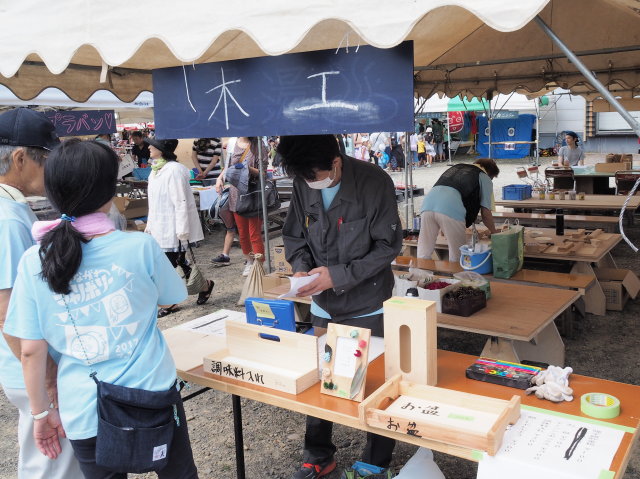 木工体験はお盆や調味料入れ等の製作です。