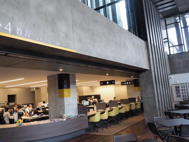 各階市民スペースに「市民テラス」と称した吹き抜けの大空間にソファーやテーブル席等を設置