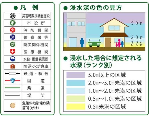 基本方針の安全性の高い施設として「防災拠点として高い耐震性の確保」が挙げられています。東日本大震災で庁舎に被害があったことから、まず第一に「耐震」が重視されたのは理解できます。しかし、新庁舎の所在地(旧庁舎の所在地と同じ)はハザードマップによれば、浸水地域にありますが基本方針では洪水については挙げられていません。