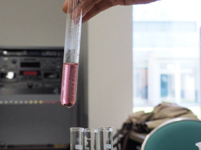 「調べてみよう」のコーナーで食品添加物の説明を受けました。これはコチニール色素です。天然とは言え、虫からとっているので生理的に嫌だという人も多いかと思います。