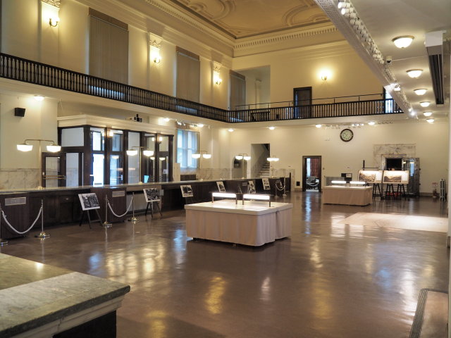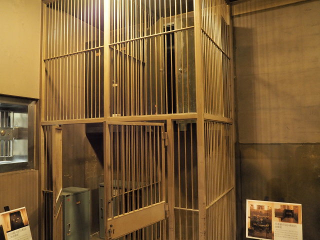 アメリカモスラー社の金属金庫の内部にも入ることができます。広島支店にもあった金庫は原爆にも耐えることができたとの説明です。鉄の厚はさ数十センチもあります。