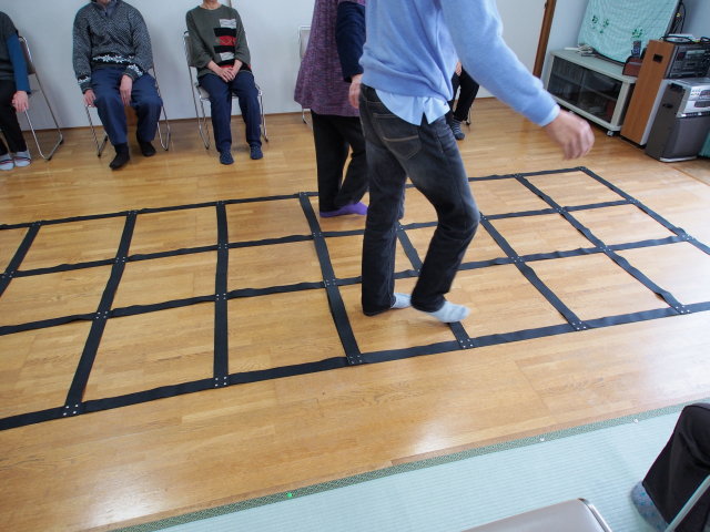 「ふまねっと運動とは、50センチ四方のマス目でできた大きな網を床に敷き、この網を踏まないようにゆっくり慎重に歩く運動です。