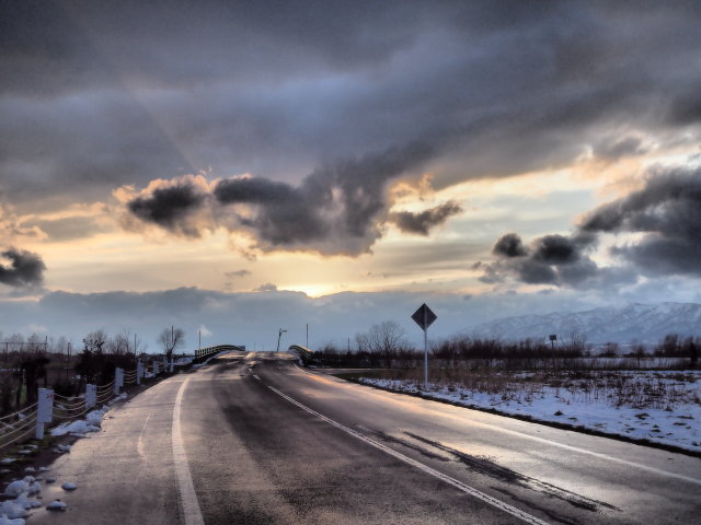 昨晩からの雨で道路の雪は消えてしまいました。本日も遊水地では、マガモの群れが休養していました。現在、猟期であり、石狩川等から避難しているという説もあります。