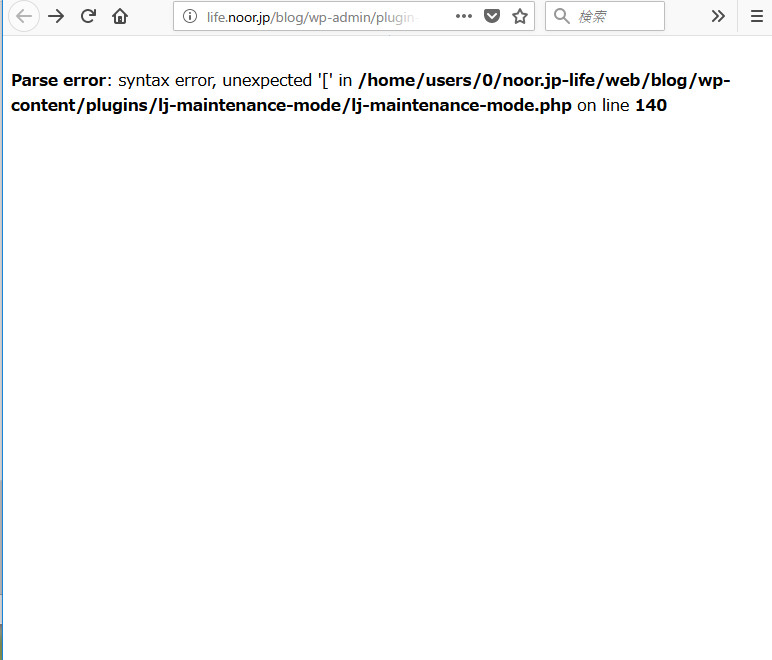 maintenance-modeというプラグインがエラーを起こしているという意味でこんな画面がでます。