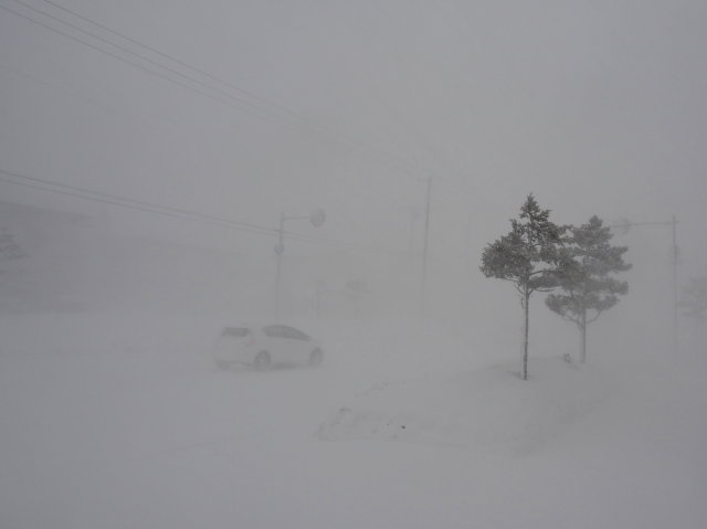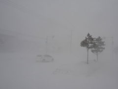 爆弾低気圧 投稿日時: 2017年12月26日 投稿者: 武田しん 何ともこれは・・・。年末まで片付けるべきことが多い時期に爆弾低気圧の襲来。こらからも強風が続くみたいですので不要不急の外出はお控えいただければと思います。私も「ゆう」で予定されていた打ち合わせが延期になるなど影響が及んでいます。 午後3時頃の自宅前の国道12号線です。ホワイトアウトと言ってよい状態だと思います。トラック等はハザードランプを点け、低速で走っている状況です。このような吹雪はシーズン中に何回かはあるものですが、今回のような大規模な低気圧は滅多にないと思います。