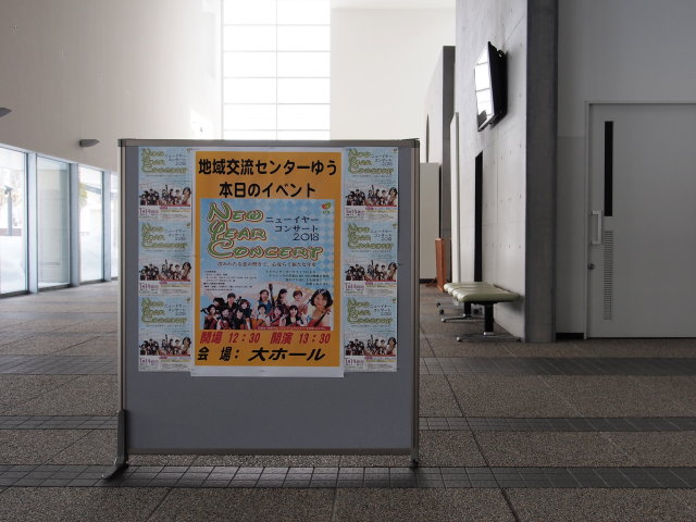 午後からはニューイヤーコンサートのため「ゆう」に出かけました。本日の私の担当は会場係です。いろいろ準備もありましたが、今年も好評に終わりほっとしました。