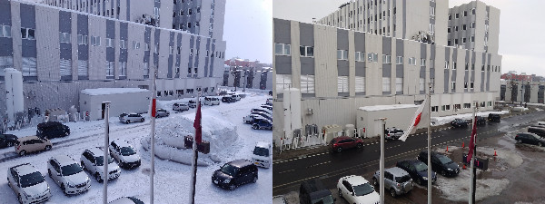 会派控室から撮影した3月定例会初日と本日最終日の比較です。途中、大雨もあり、雪がかなり融けた様子がわかります。