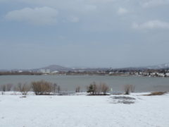 昨日の雨と風で遊水地を覆っていた氷はすっかりなくなりました。