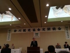 午後6時から砂川パークホテルで開催された砂川観光協会定期総会に出席してきました。この定期総会では毎回、ゴールデンウィーク中の入込客数について報告があります。活性化プラザについては、今回から観光バスではなく、出入口のセンサーにて計数がされるようになりました。