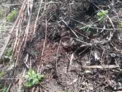 何年間も人が通っているとは思えない林道を歩いていると斜面に大型獣と思われる足跡を見つけました。鹿が滑ったのか、それとも羆でしょうか。鹿道があちこちにあるのを確認したので、早朝に行けば、鹿を駆除できそうです。