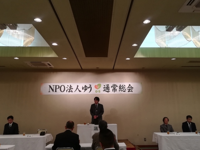 NPO法人ゆう通常総会 投稿日時: 2018年5月18日 投稿者: 武田しん 先日は、NPO法人「ゆう」の通常総会に出席していました。私は正会員として所属しています。 今回は、役員任期2年を満了したことから役員の改選がありました。理事、正会員、ボランティアの皆様については、常日頃から「ゆう」の活動にご尽力をいただき、ありがとうございます。 其田理事長のあいさつにもありましたが、「ゆう」は多くの人にささえられていることを実感した1年でした。本年度についても私は一正会員として役割を果たしていきたいと思います。
