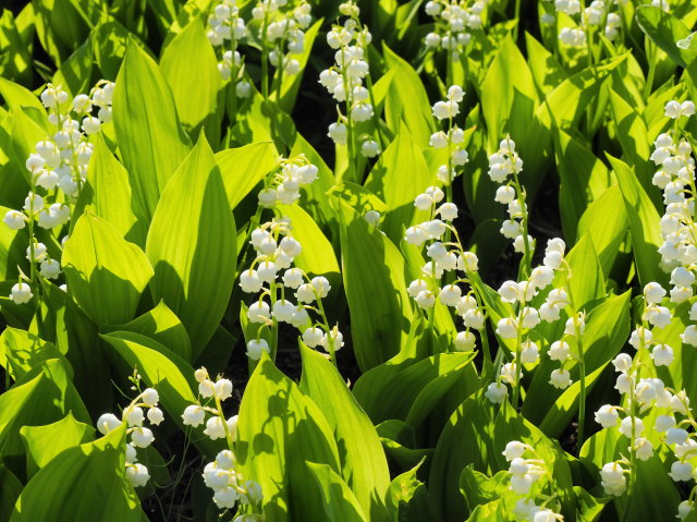 自宅前の植樹枡のスズランが満開になりました。スズランは砂川市の花ですが、自宅前のこの群落以外では、市内で咲いているのを見たことがありません。