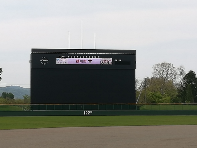 バックスクリーン・スコアボードについては、LEDを使用しており、画像の表示も可能です。操作は端末により可能となっています。