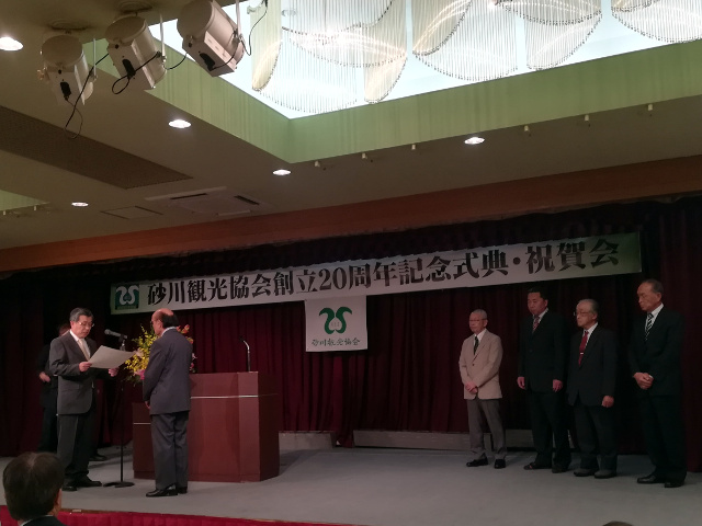 砂川観光協会創立20周年記念式典・祝賀会に会員として出席しました。市長をはじめ、教育長、議長など 多数の御来賓が出席されました。