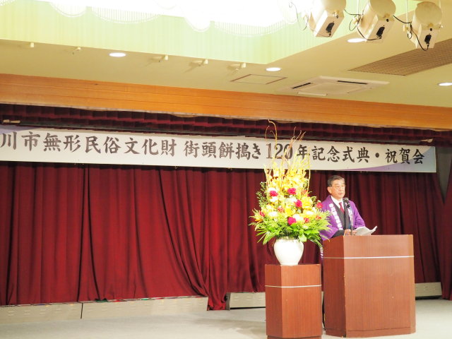 午後6時からは、街頭餅搗き120年記念式典・祝賀会に出席しました。