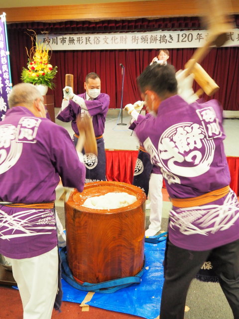 砂川の伝統文化である街頭餅搗きの継承に長年に渡り御尽力されてきた皆様ありがとうございました。国会議員、道議会議員など各界の重鎮も来賓として出席し、盛大に開催されました。