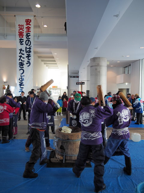 砂川市地域交流センター「ゆう」をはじめ、福寿園、砂川市福祉複合施設、新砂川農業協同組合前で餅つきが行われました。